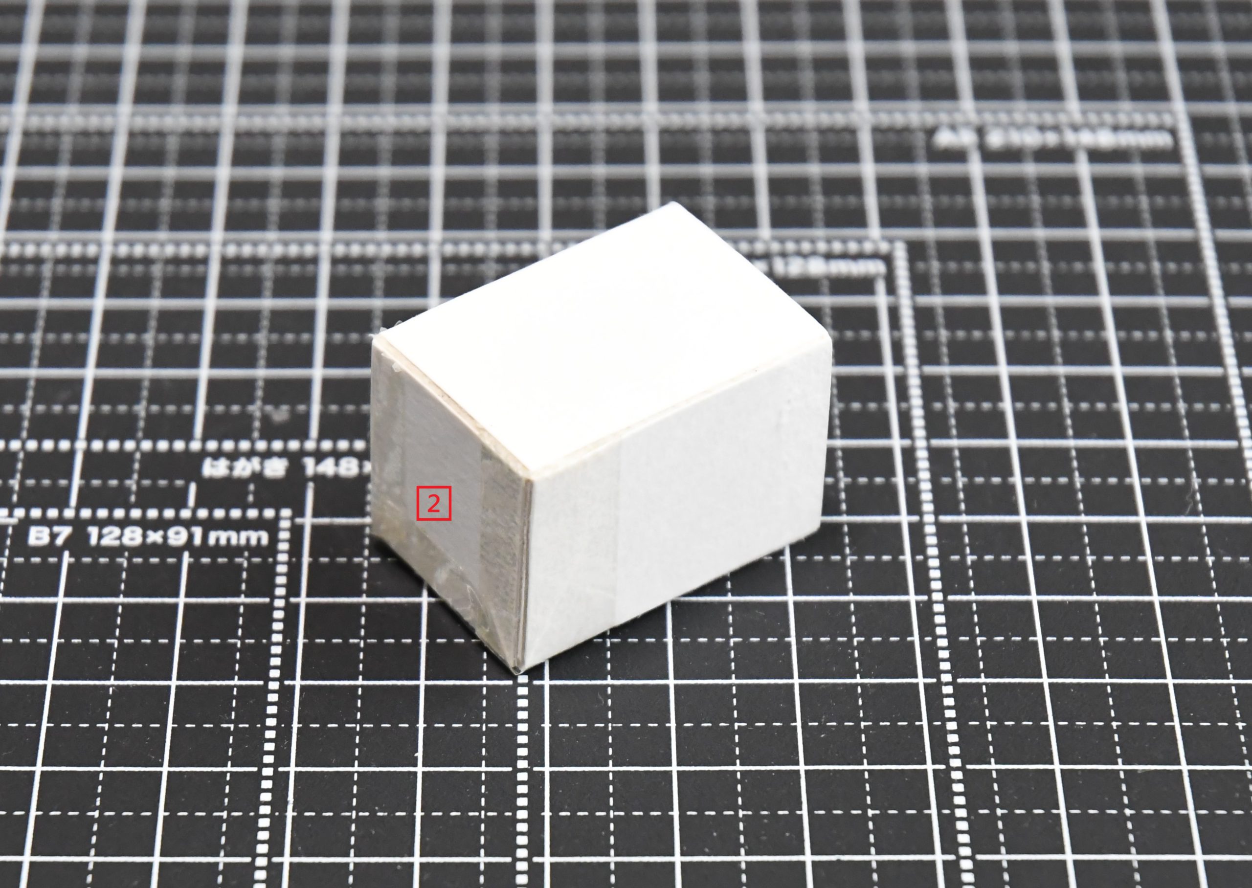 ③ シャーシの型紙を折り線で折り、基板台とモーター台を貼り付けたら完成だ。それぞれのコードの長さもあるので、台を貼り付ける前に基板やモーターの位置の確認をするといいよ。