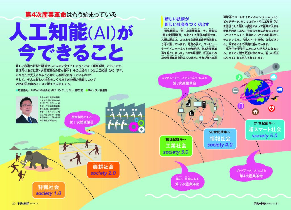 2020年12月号「人工知能(AI)が今できること」に取材協力いただいた、エヴァンジェリストの鷹取宏