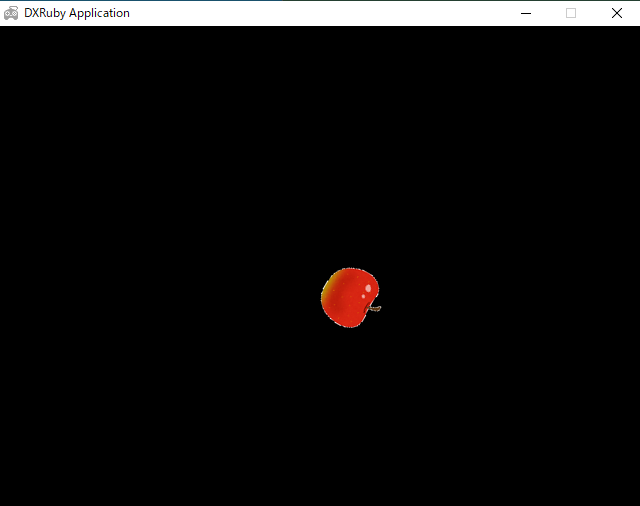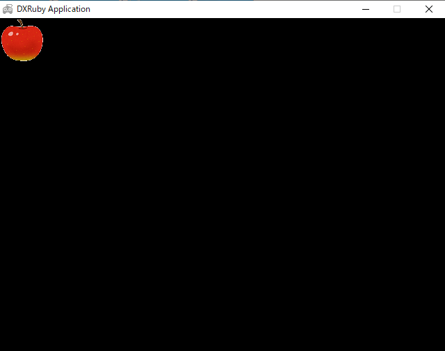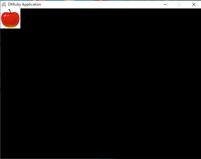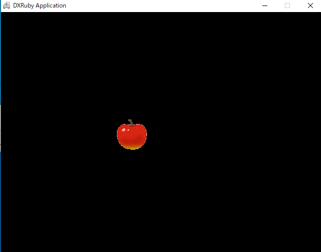 コマンドプロンプトで実行してみよう。DXRuby Applicationのウィンドウにマウスポインタ―を持っていったら、リンゴの画像が表示されたかな。マウスを動かすと、それに合わせてリンゴの画像も動いたんじゃないかな。