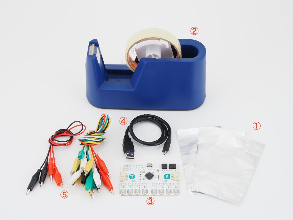 をそろえよう。「KoKa KeyTouchクリエイターBOX」以外は、おうちにあるものでつくることができるよ。