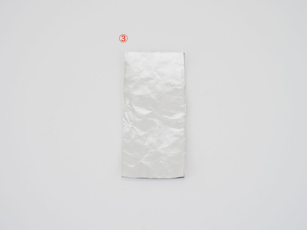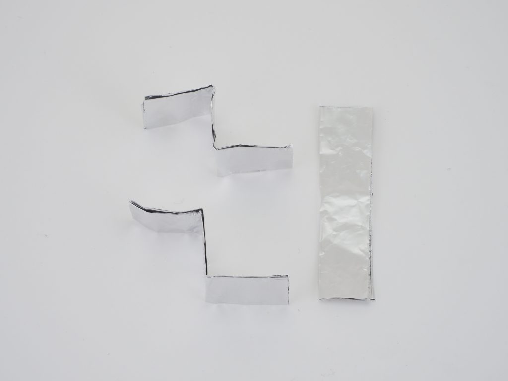 ② 細長く折ったアルミホイル3枚のうち2枚を、アルファベットの「Z」の形になるように折る。