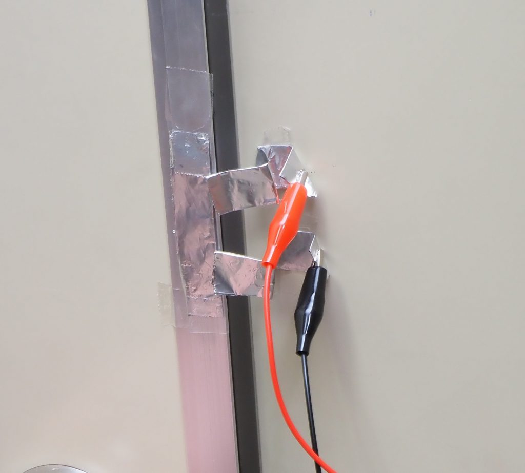 り付ける。貼り付ける場所は、ドアをあけたり閉めたりしたときに、アルミホイルがドアに触