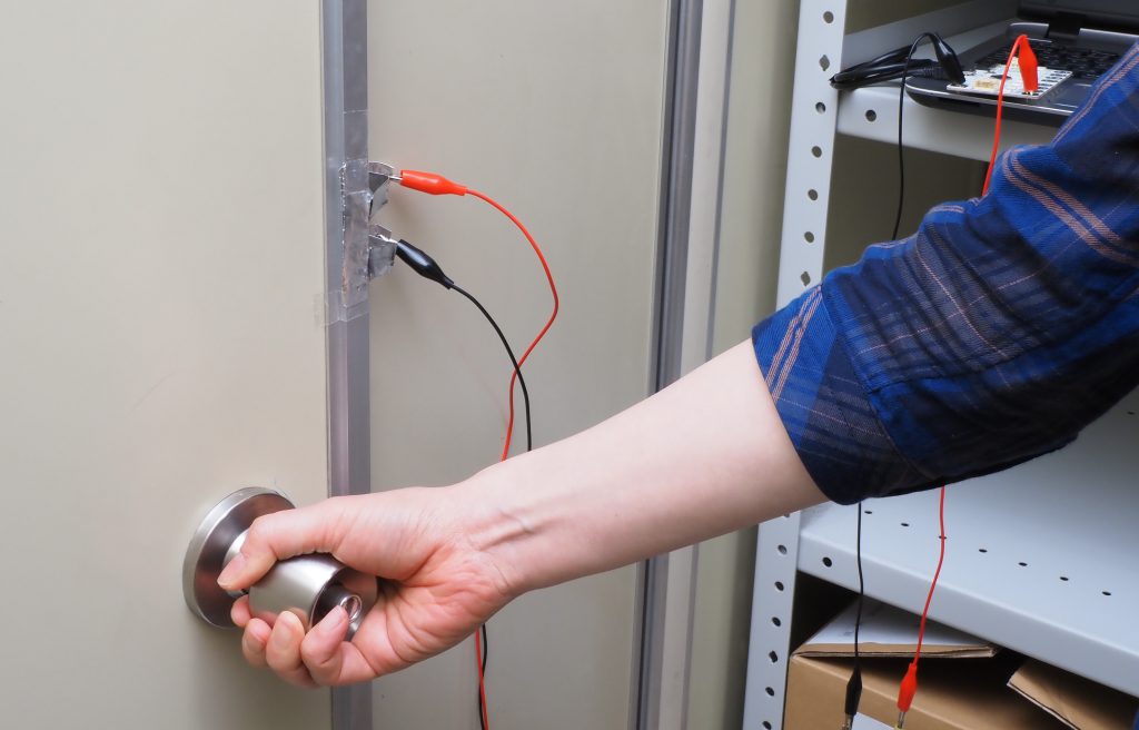 に、キータッチを使ったしかけを設置することで、ドアの開