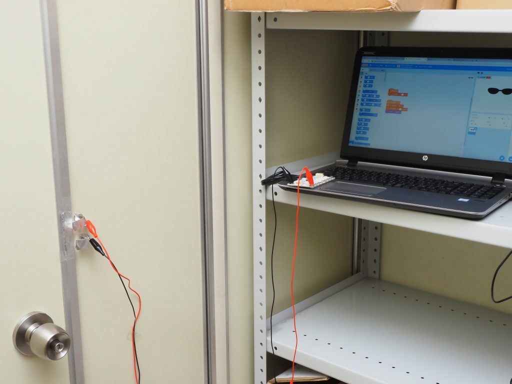 ひとまず、スパイドアユニットのプログラムができたので、装置とパソコンをつないで動かしてみよう。ドアを開けたら音がしたり、ドアを開けた回数がカウントされるはずだ。