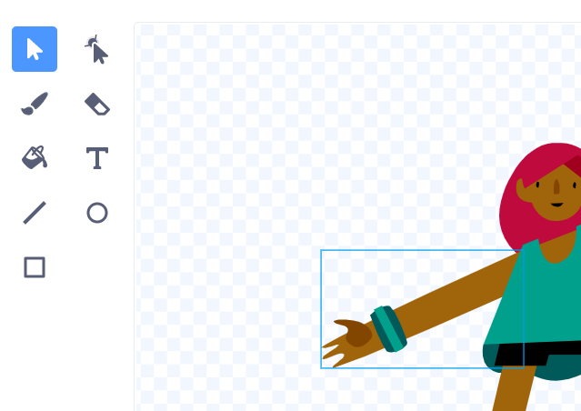 矢印アイコンの選択ツールで左側のうでをクリックする。