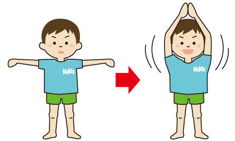 、手をたたく回数をカウントしてみよう。水平の状態、頭の上で手を合わせた状態