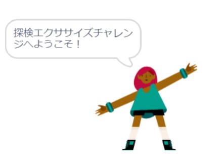 緑の旗をクリックしたら、「Max」が「探検エクササイズチャレンジにようこそ!」と言ってくれたかな。