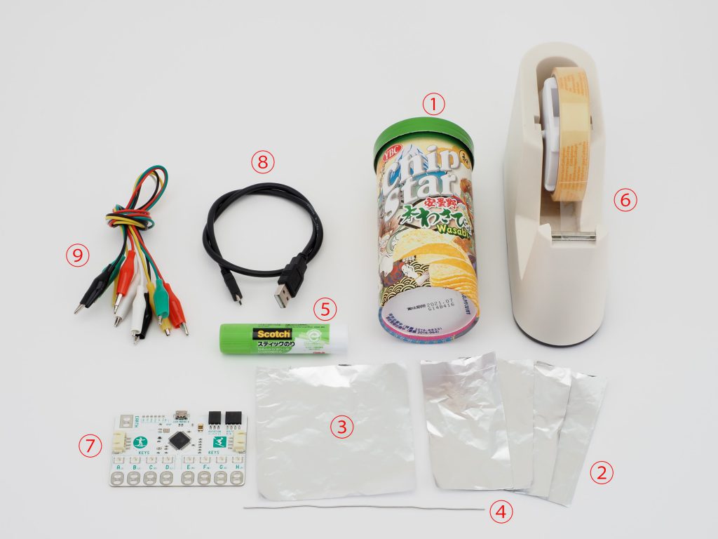 これで装置は完成だ。次回はパソコンとキータッチをつなげて、風鈴のプログラムをつくっていくぞ。