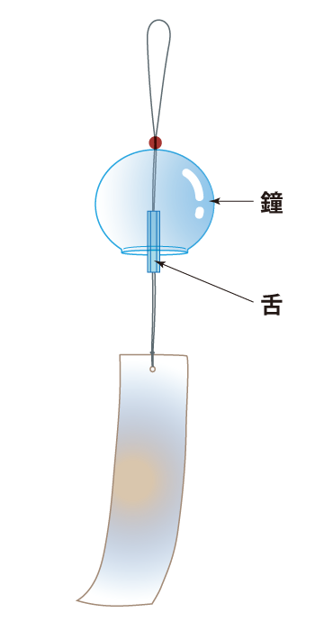 「鐘」と「舌」ができたら、それらを組み合わせて風鈴を完成させよう。