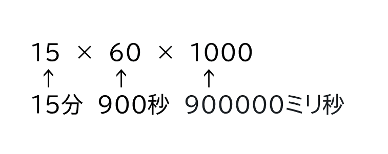 しているが、ミリ秒とは1000分の1秒となる。なので15分をミリ秒に変換
