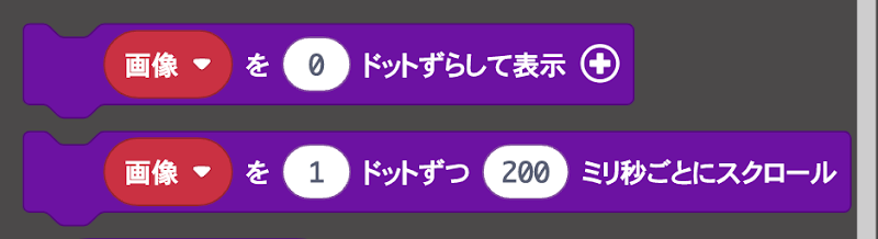 「(画像)を(0)ドットずらして表示」や「(画像)を(1)ドットずつ(200)ミリ秒ごとにスクロール」ブロックを見てみると「画像」という名前の変数を使っているようだ。