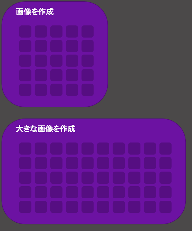 では、「画像を作成」、「大きな画像を作成」ブロックは、他のブロックにどのようにしてつなぐのだろう。