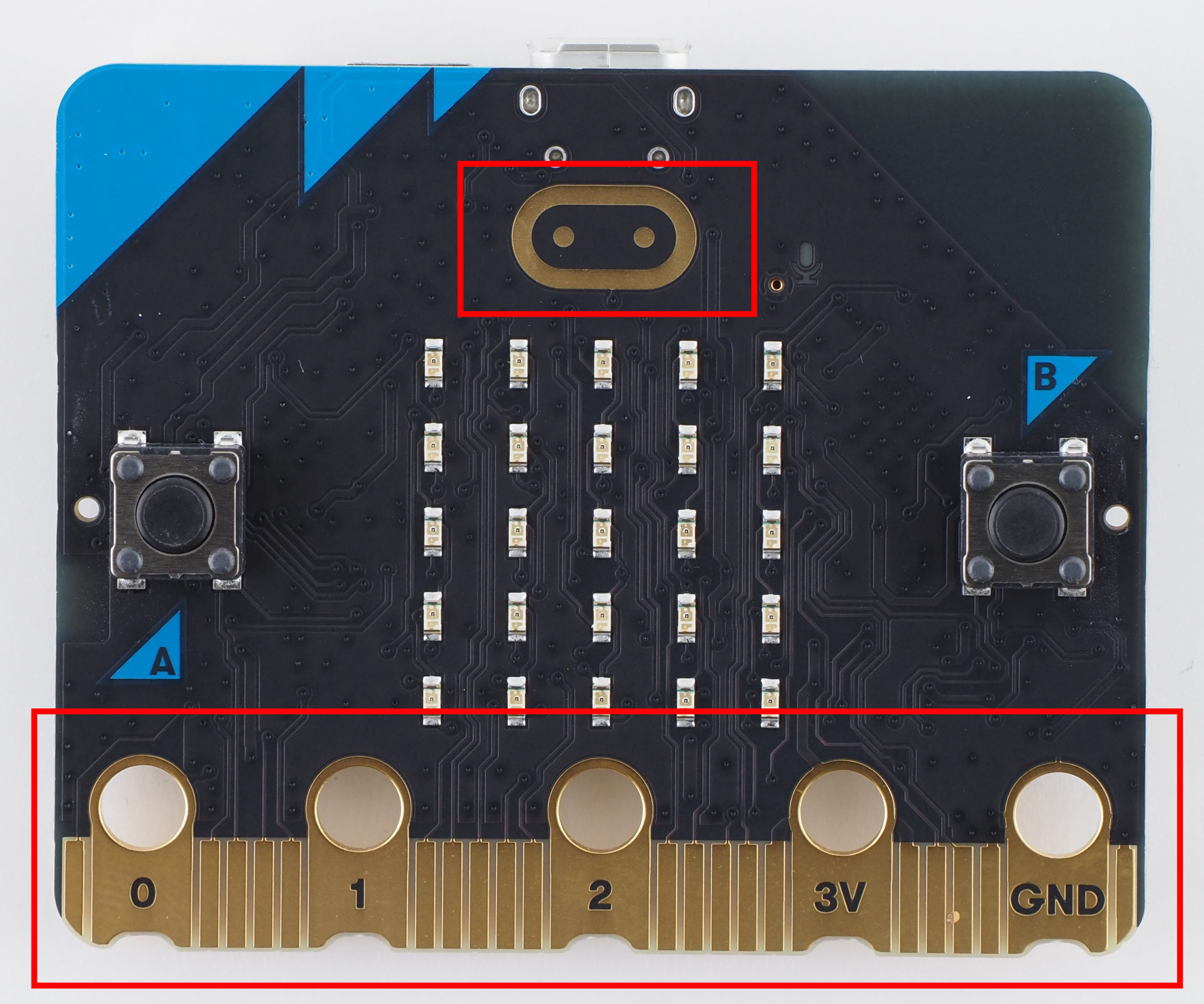 エッジコネクターの形が直線になっていて、表面のmicro:bitのロゴが本体の左上にある色と同じ色。