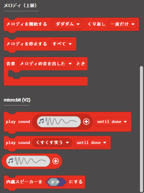 これまでもあった「音楽」カテゴリーのブロックをおさらいして、micro:bit V2への対応で追加されたブロックの使い方も紹介するよ。