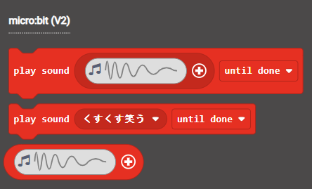 ここからはmicro:soft V2になって使えるようになった「play sound」ブロックを使ってみよう。もしmicro:bitのバージョンがV1.5以前でも、MakeCodeのシミュレーターでは試すことができるので、ぜひチャレンジしてみてね。
