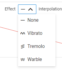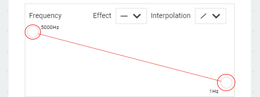 「Effect 」を変えると直線だった「Frequency」に変化がつけられる。「Interpolation」を変えると滑らかに変化するようになるぞ。