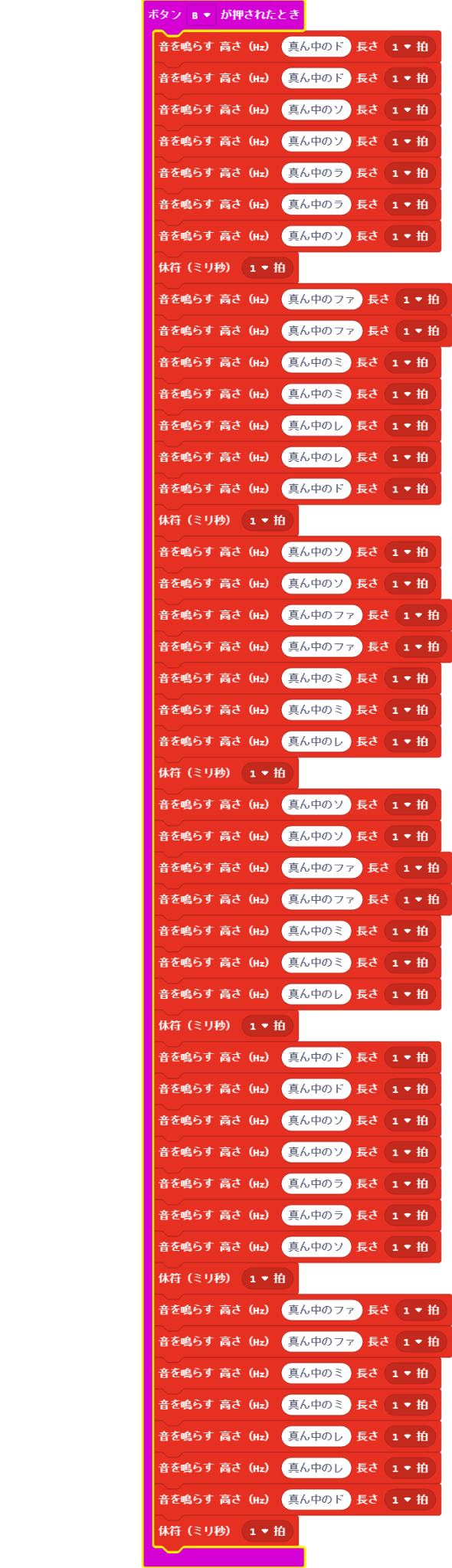 「きらきら星」のプログラムは、こちらから見ることができるよ。わからないなと思ったら参考にしてみてね。