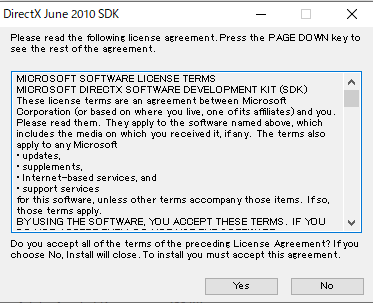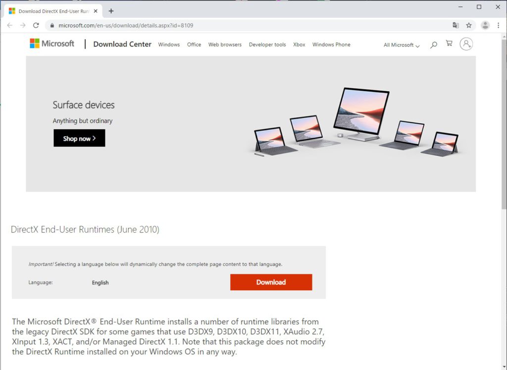 ① Microsoft公式サイトのダウンロードセンターにアクセスして、「DirectX End-User Runtimes (June 2010)」をダウンロードする。