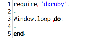 これがDXRubyの基本形となるので、しっかり覚えておこう。