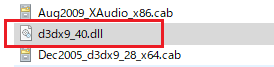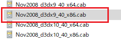 ④ D9フォルダの中にあるたくさんのファイルの中から「Nov2008_d3dx9_40_x86.cab」という名前のファイルを探して、ダブルクリックする。