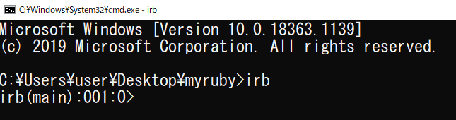 この「irb(main):001:0>」プロンプトのあとに、次のように入力しよう。