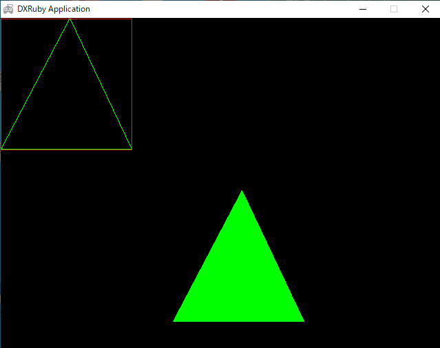 直線、四角形、円を描いてみたけど、Windowモジュールには三角形を描くためのメソッドがないんだ(自分でつくることはできる)。 そこで、DXRubyのImage クラスにあるメソッドを使って三角形を描いてみよう。