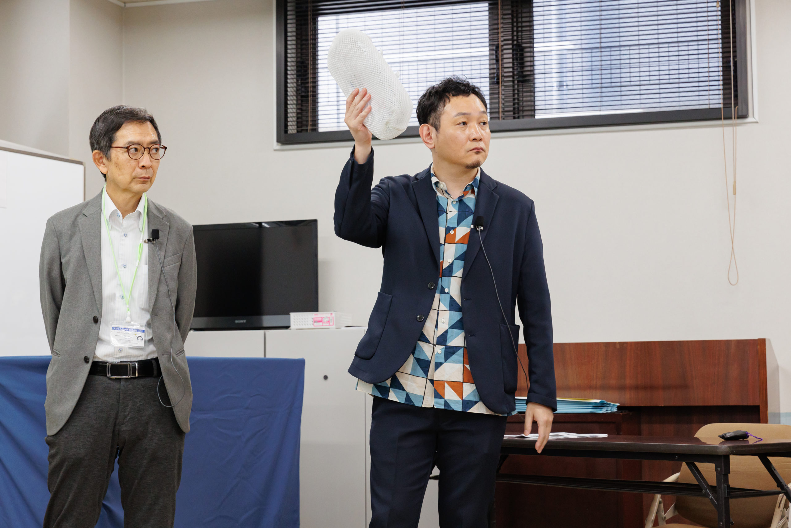 今回、西堀さんが発明したのは「静音 靴丸洗い洗濯ネット」。もともとは、靴を洗うブラシと乾かすハンガーを一体化させるアイデアでしたが、スマイルキッズ株式会社とのやりとりを重ね、洗濯ネットの形にたどり着きました。