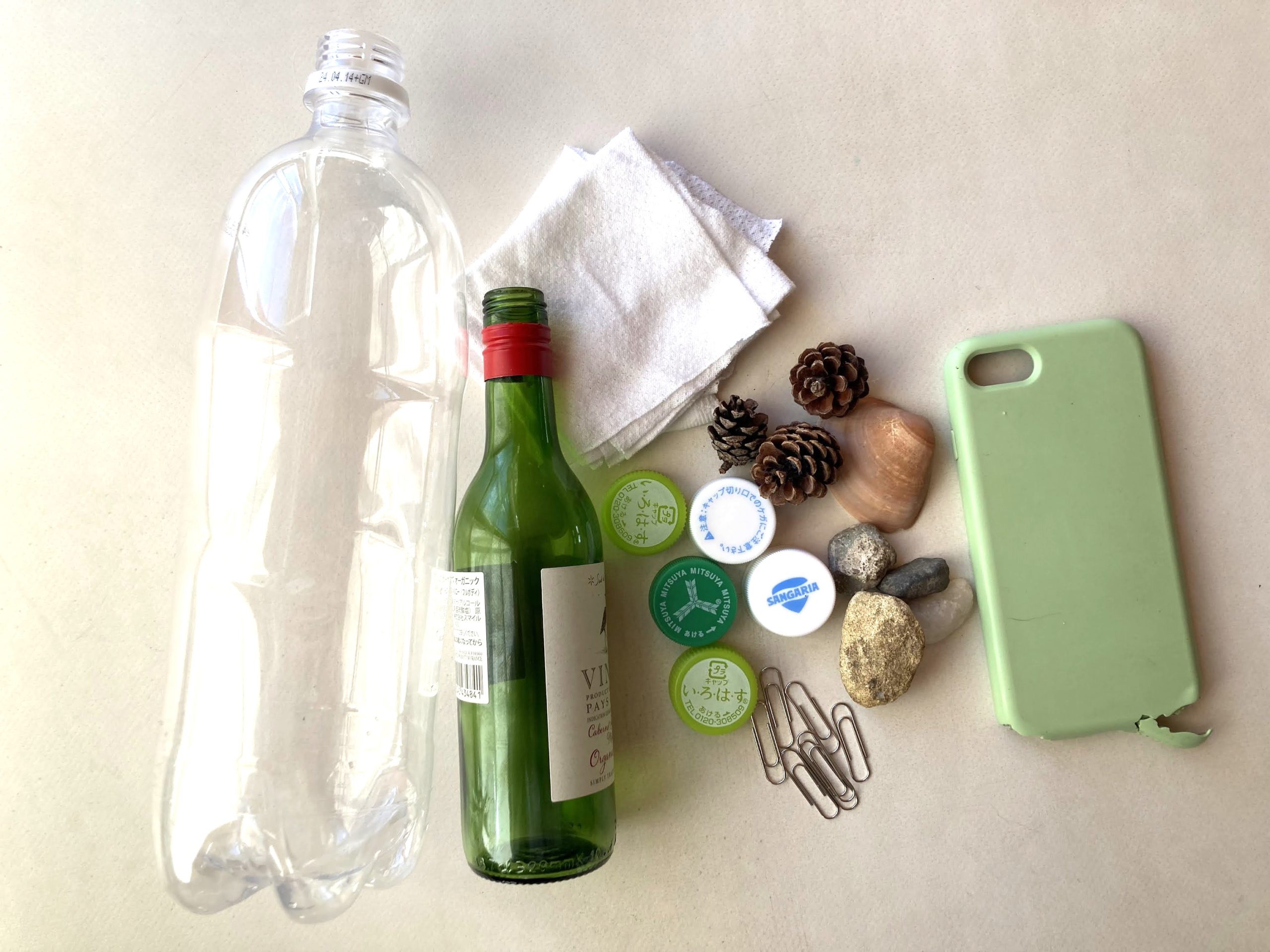 ③ くっつける物を決めたら、「何で」くっつけるかを選ぼう。のりや接着剤、セロハンテープはもちろん、グルーガンや粘土(お湯でやわらかくなる粘土「おゆまる」もおすすめ♪)など、100円ショップでいろいろと探してみるのもいいよ。