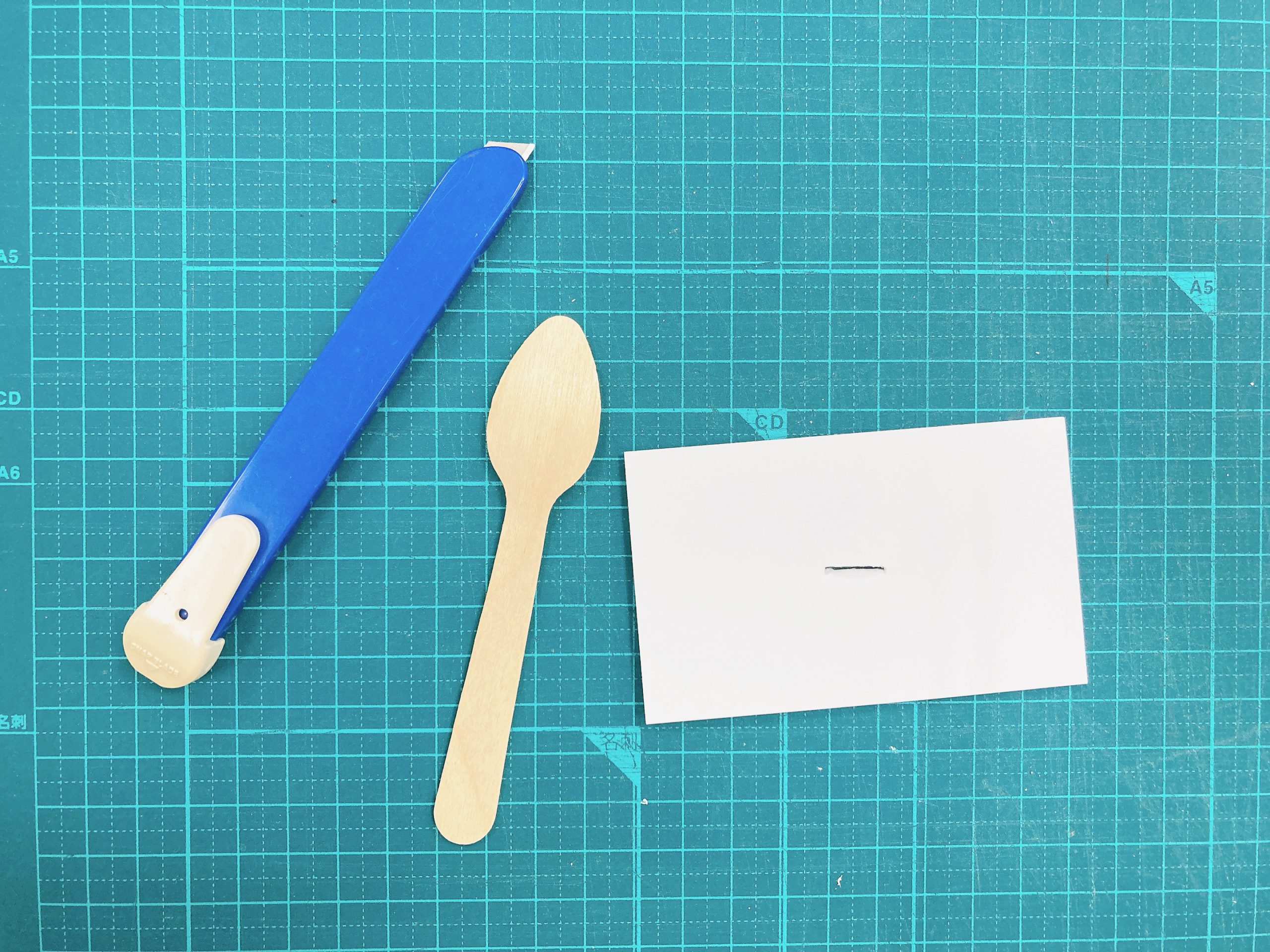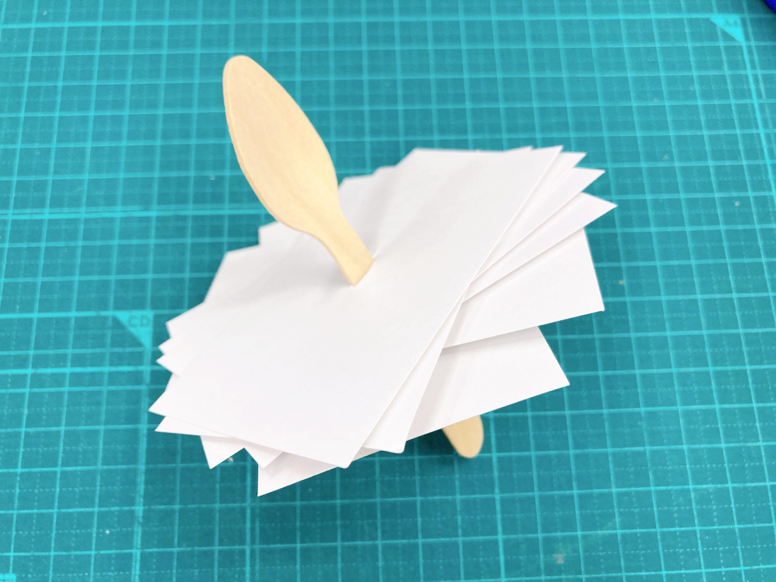 ・薄い材料の場合、キリで小さな穴を空けて、つまようじ、竹串を差し込んで軸にするとよい。