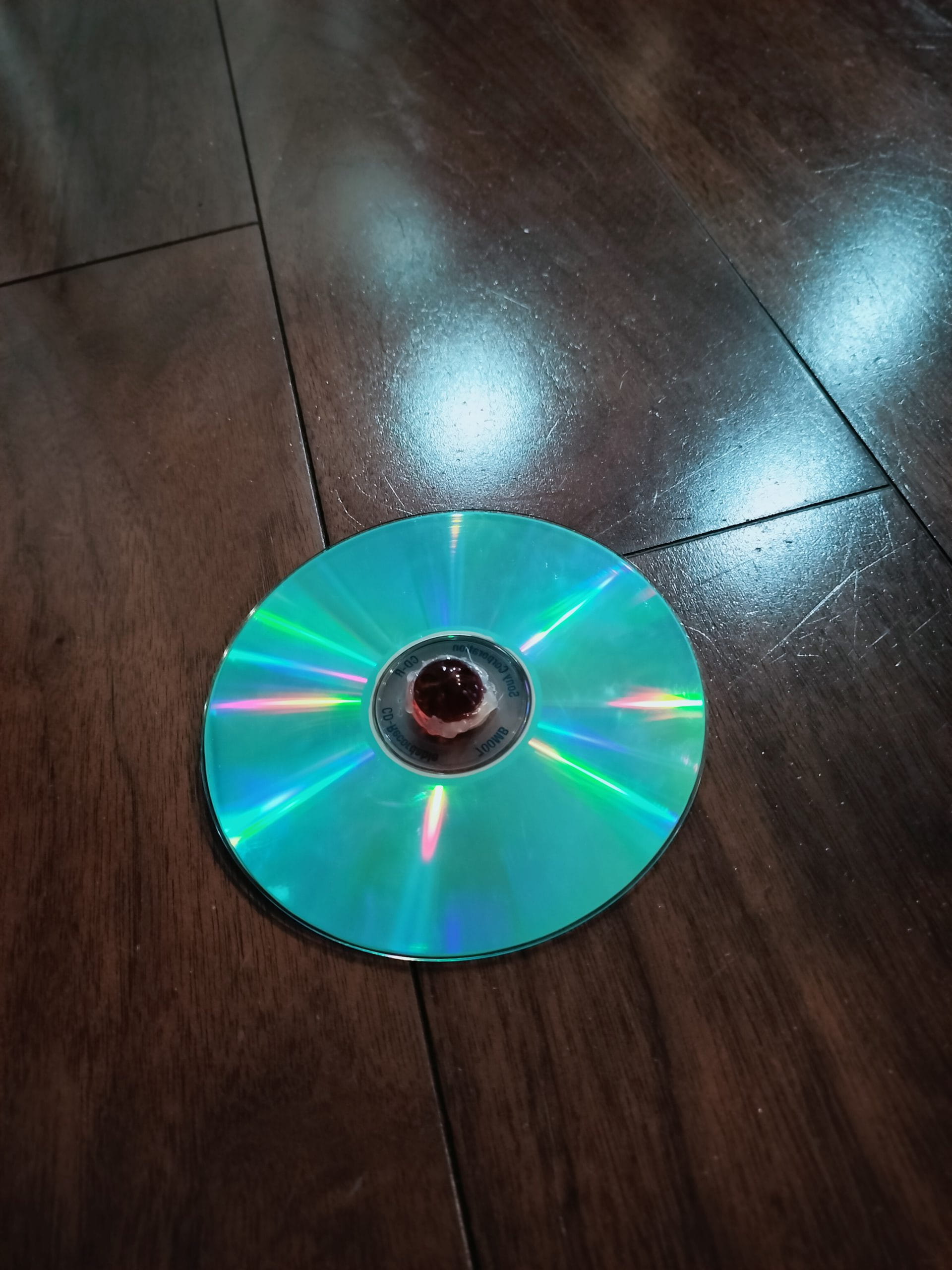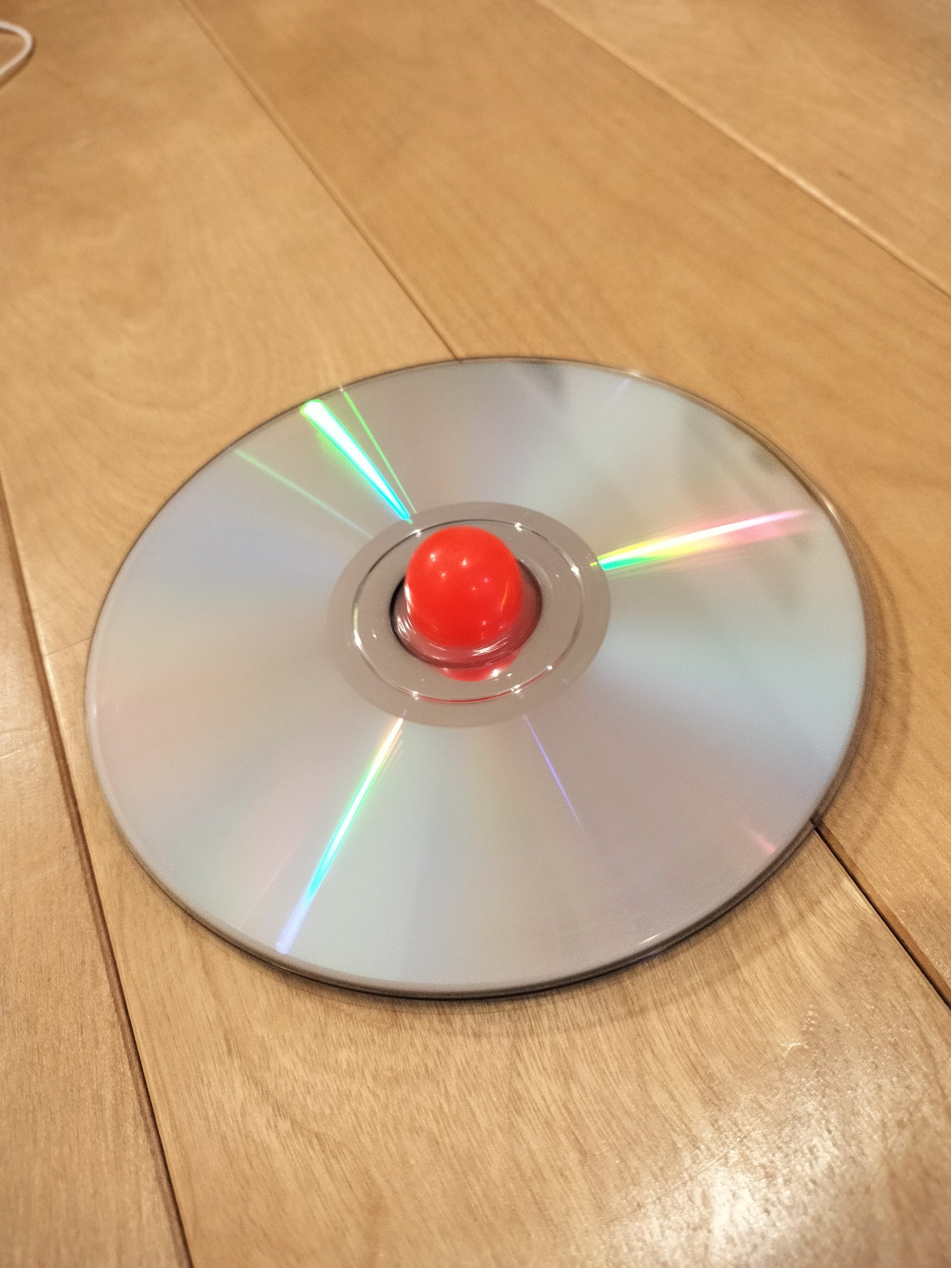 CDとスーパーボールをボンドでしっかり固定したおかげで長く回りましたね。少し高いところから回りながら落としてみましょう。ぴょんぴょん跳ねながら回るとてもおもしろい動きをするはずです。
