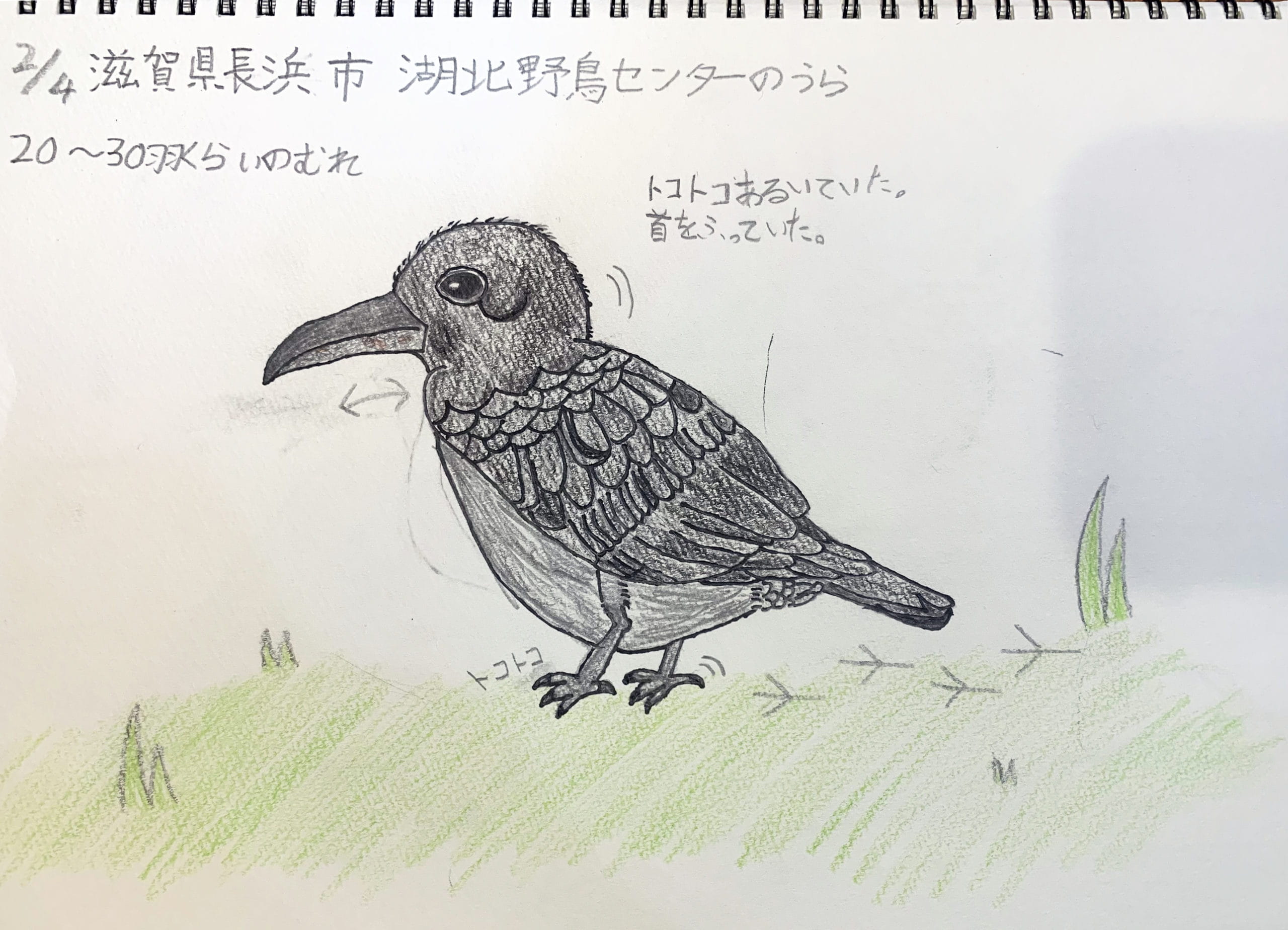 とても上手な絵です! きっと鳥をしっかりと観察して描いたのだと思います。食べ物探しと歩き方の関係がわかったのも、その観察力のおかげです。次はどんな時にホッピングしているか観察してみてくださいね。
