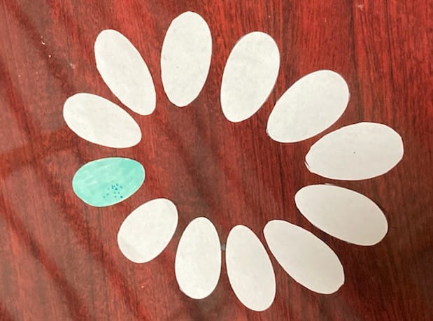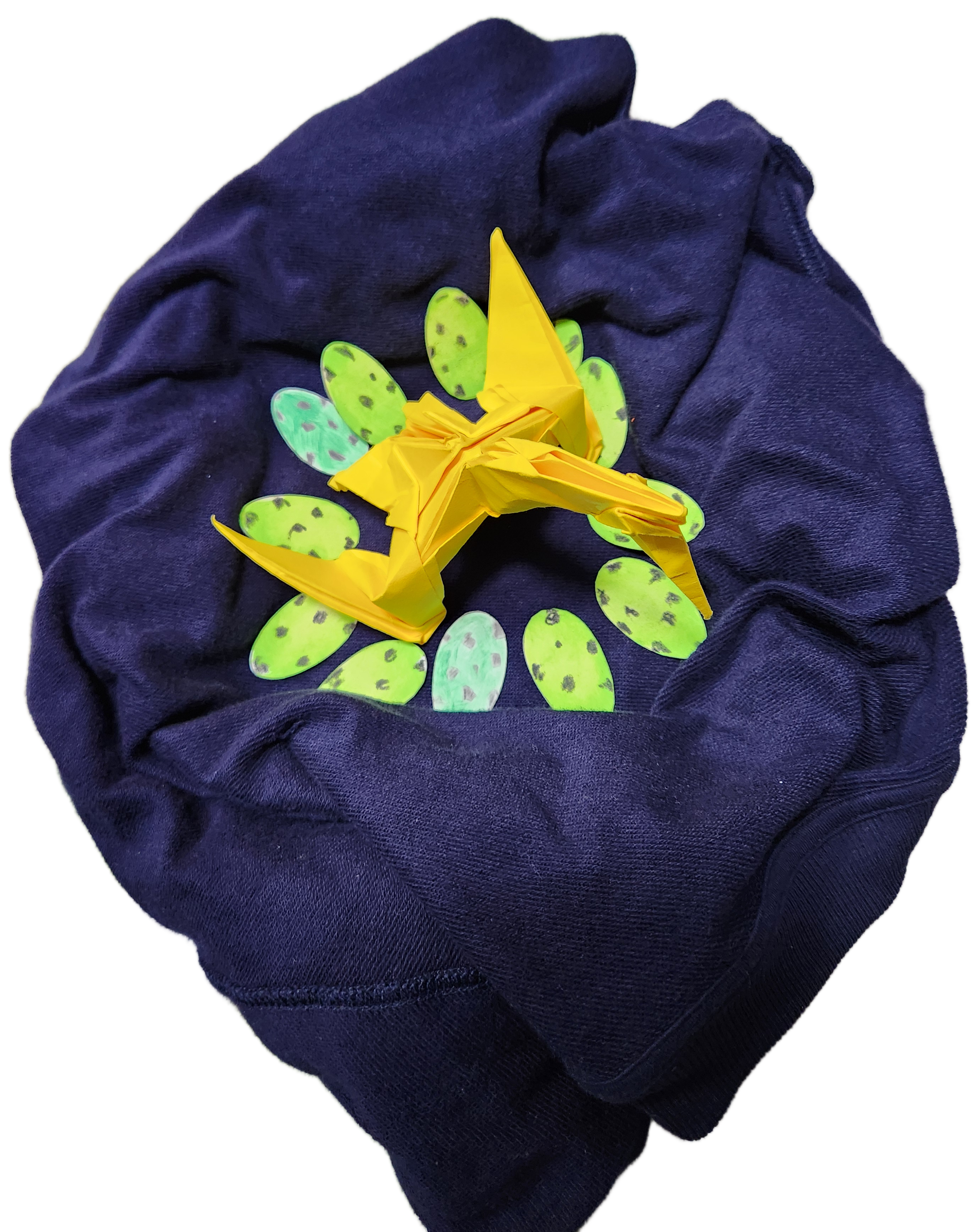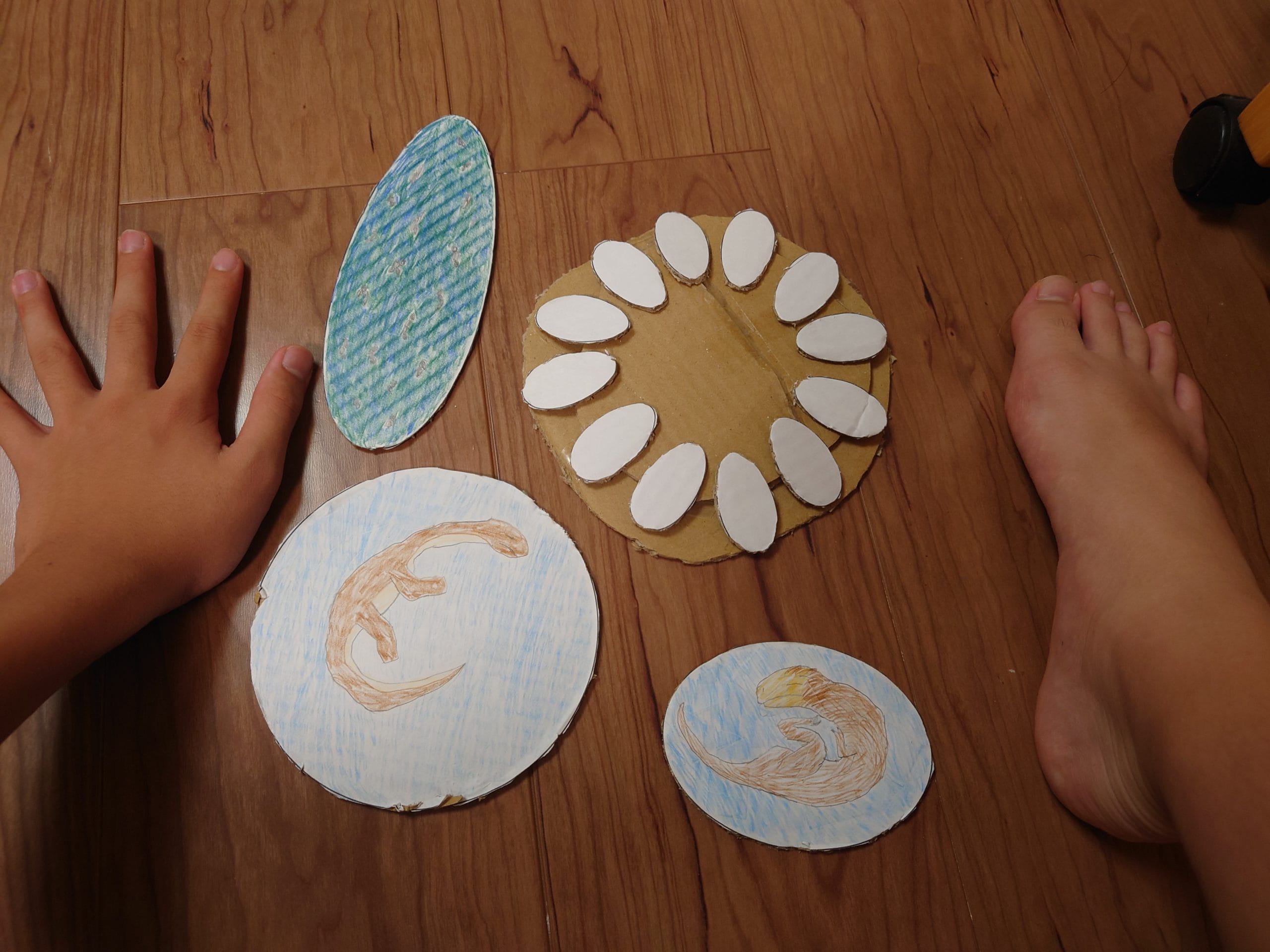 おりがみで、親がヒメウーリサスの卵を抱卵している様子をつくってくれました。とても上手ですね。卵がドーナツのように並べられているところもバッチリ。親は「早くふ化しないかなあ」と思っているのかな。