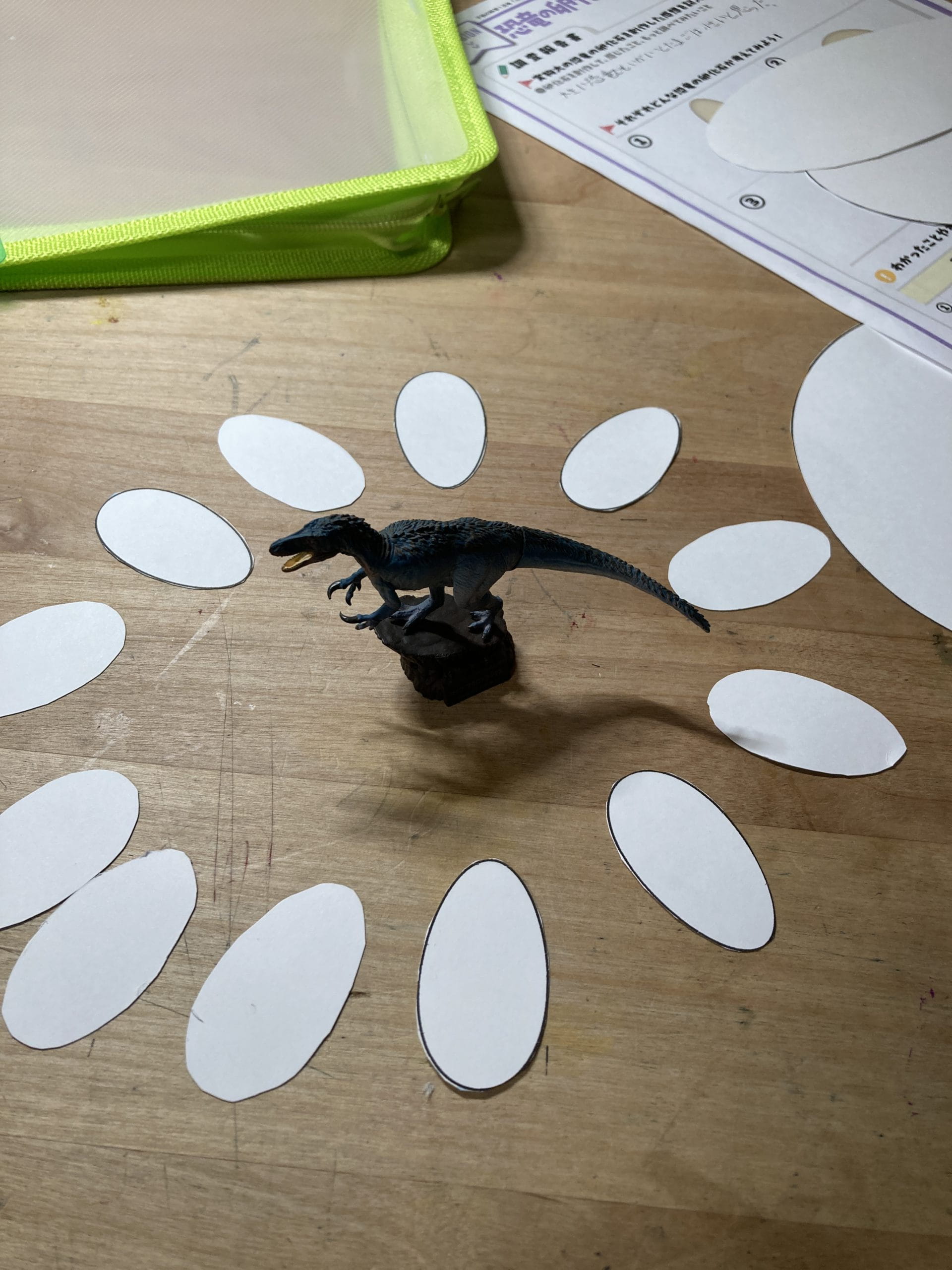 卵を並べたりするのが楽しかったです。(上に乗っている恐竜はおかあさんです)