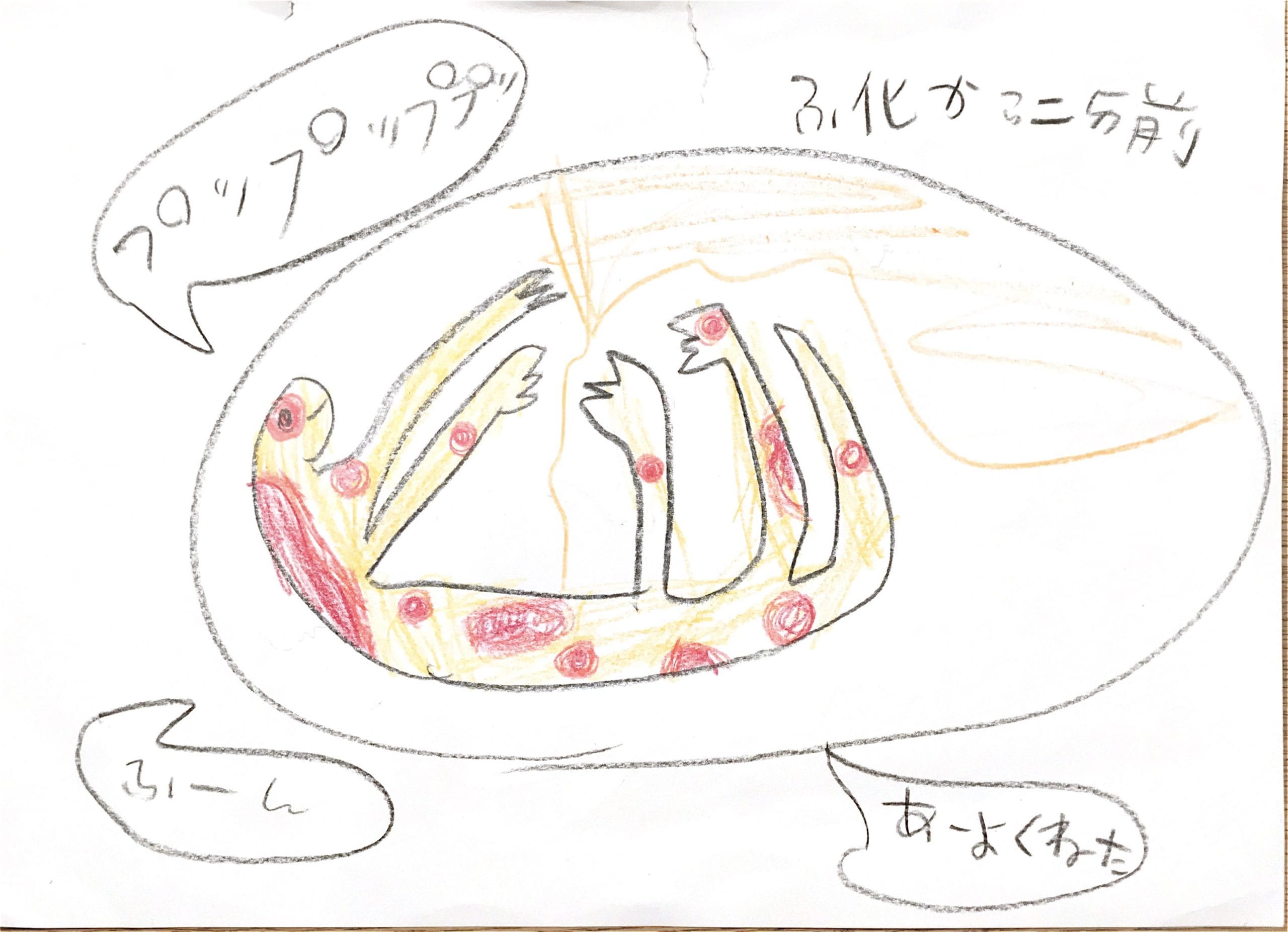 卵化石をつくったら、卵の並べ方を考えたり、色を塗ったり、卵の中の赤ちゃんの様子を描いてもらったりしました。みんなが報告してくれたミッションシートを田中康平先生に見てもらい、コメントをもらったよ! みなさんの力作をぜひご覧ください!
