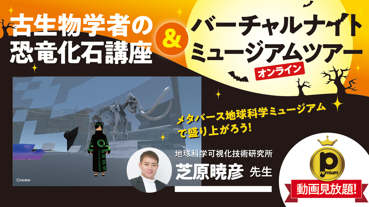 地球科学可視化技術研究所・芝原暁彦先生による「恐竜化石講座」と「バーチャルナイトミュージアムツアー」、今回の講座のテーマは恐竜。恐竜化石研究に3D技術はどのように活かされているのか。最先端の恐竜研究についてレクチャーいただいた後、芝原先生がメタバースプラットフォーム「cluster」の中につくり上げた「メタバース地球科学ミュージアム」でバーチャル化石を見学します。 動画はコチラ