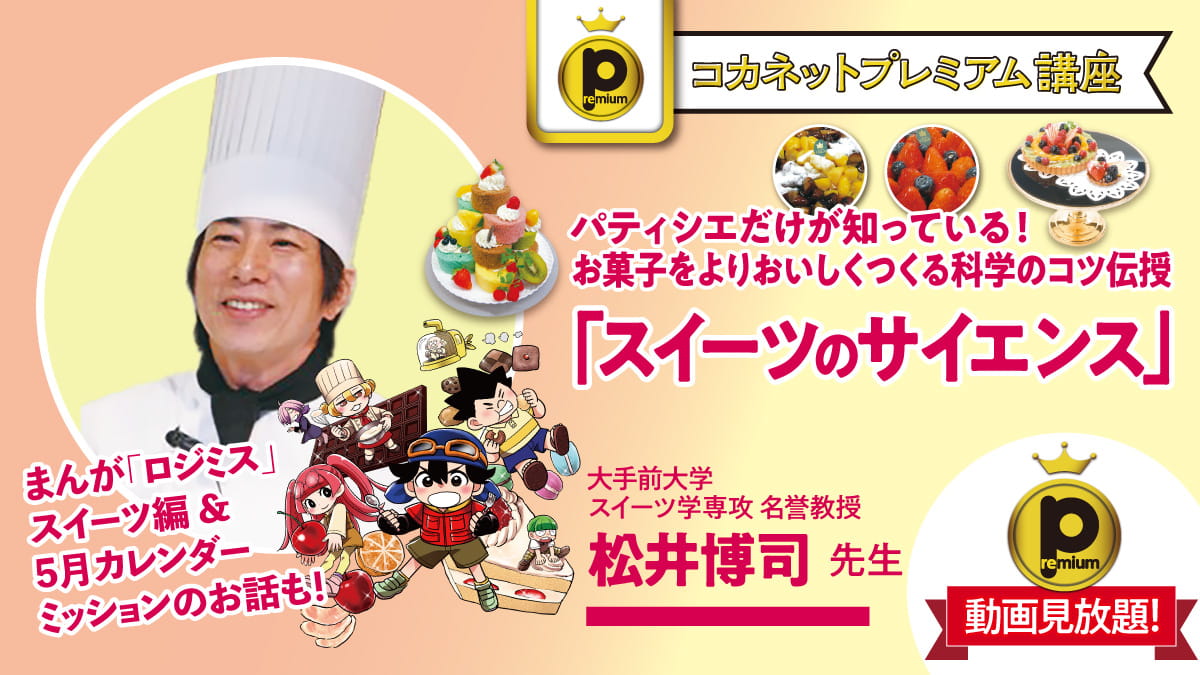 子供の科学2024年1月号付録「科学ミッションカレンダー2024」5月のミッション「お菓子の観察とスケッチ」を提案していただいた、科学者でありパティシエの大手前大学スイーツ学専攻名誉教授・松井博司先生がオンライン講座に登場!
