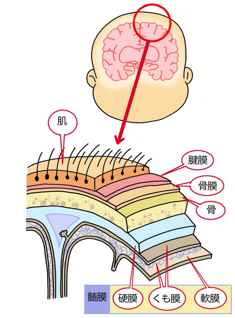 とよばれる3層の膜(そとがわから順に、硬膜