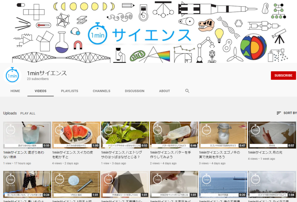 YouTubeチャンネル「1minサイエンス」は「サイエンスのはじめの一歩、ならぬ、はじめの1分」をコンセプトにつくられた小学生向け動画コンテンツ集。