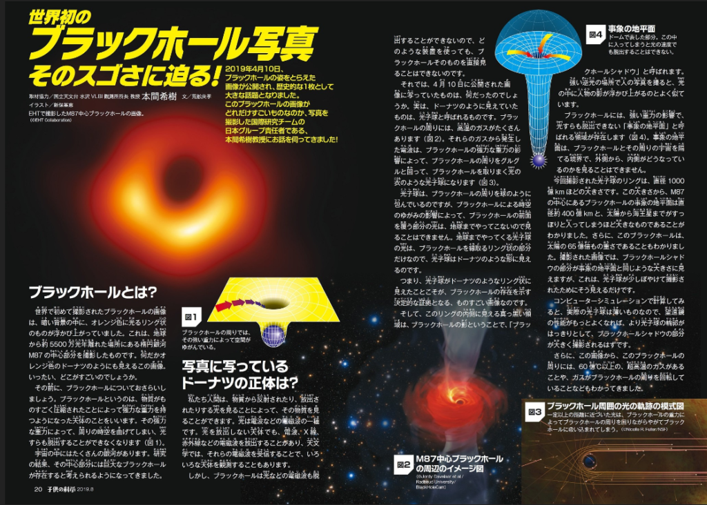 ブラックホールの撮影に成功した国際研究チームの日本グループ責任者である国立天文台・本間希樹先生のスペシャルインタビューが掲載された子供の科学2019年8月号の電子版が、コカネットプレミアム会員なら今すぐ読めます!