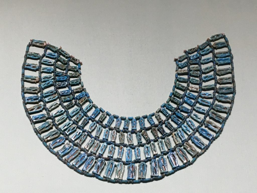 小さなビーズ玉をいくつも重ね、女神をかたどった襟