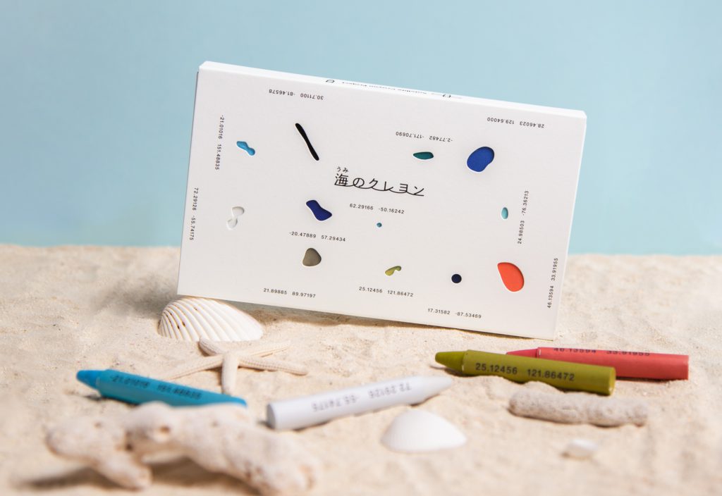 この「海のクレヨン」は、衛星写真の中から12か所の海を選び、その色をクレヨン職人と一緒に再現したクレヨンです!
