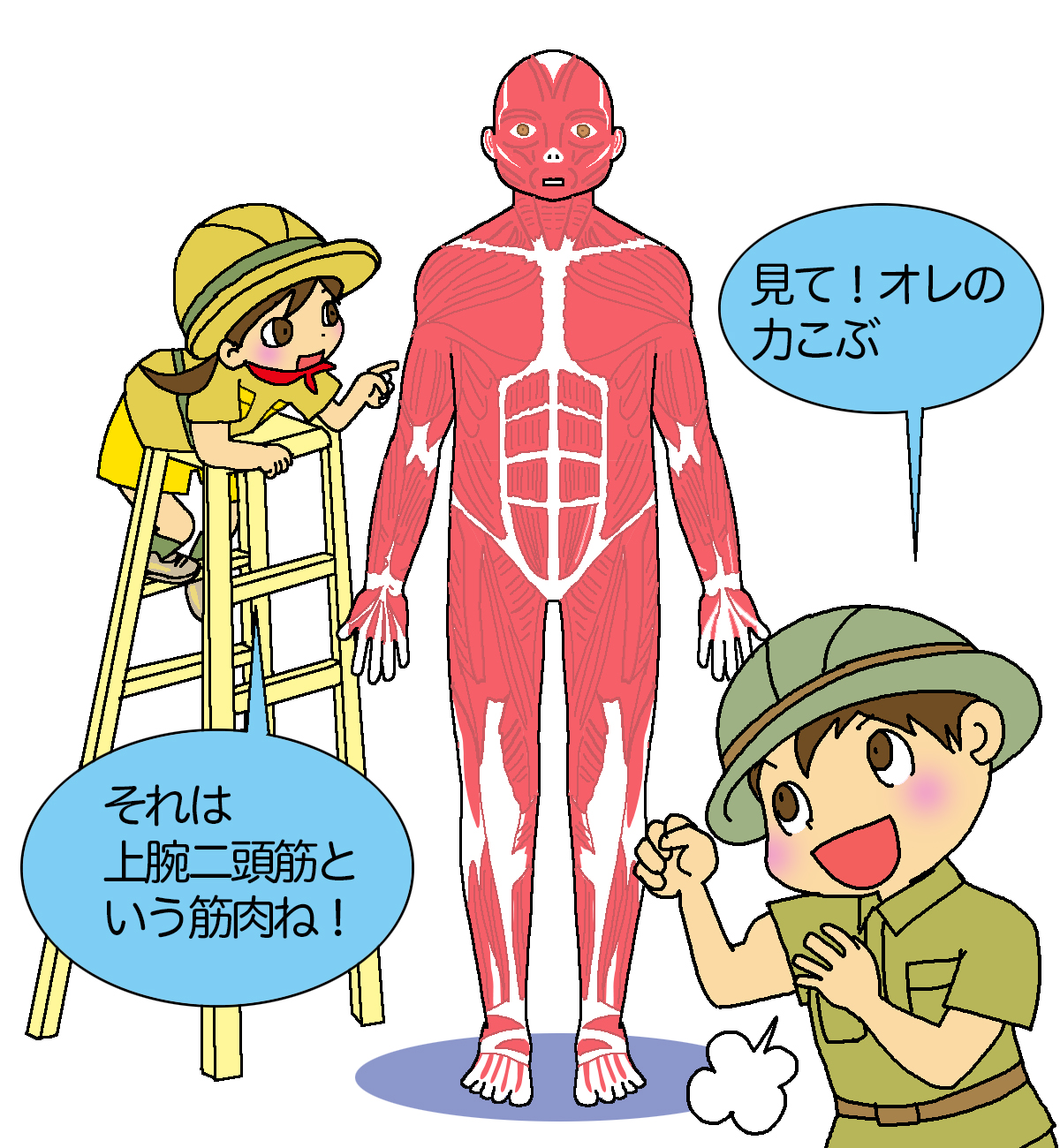 といいつつも、筋肉も骨と同じ、全身どこにでもありますね。力もちのあなたは、腕を曲げると上腕に立派な力こぶをつくることができますか?
