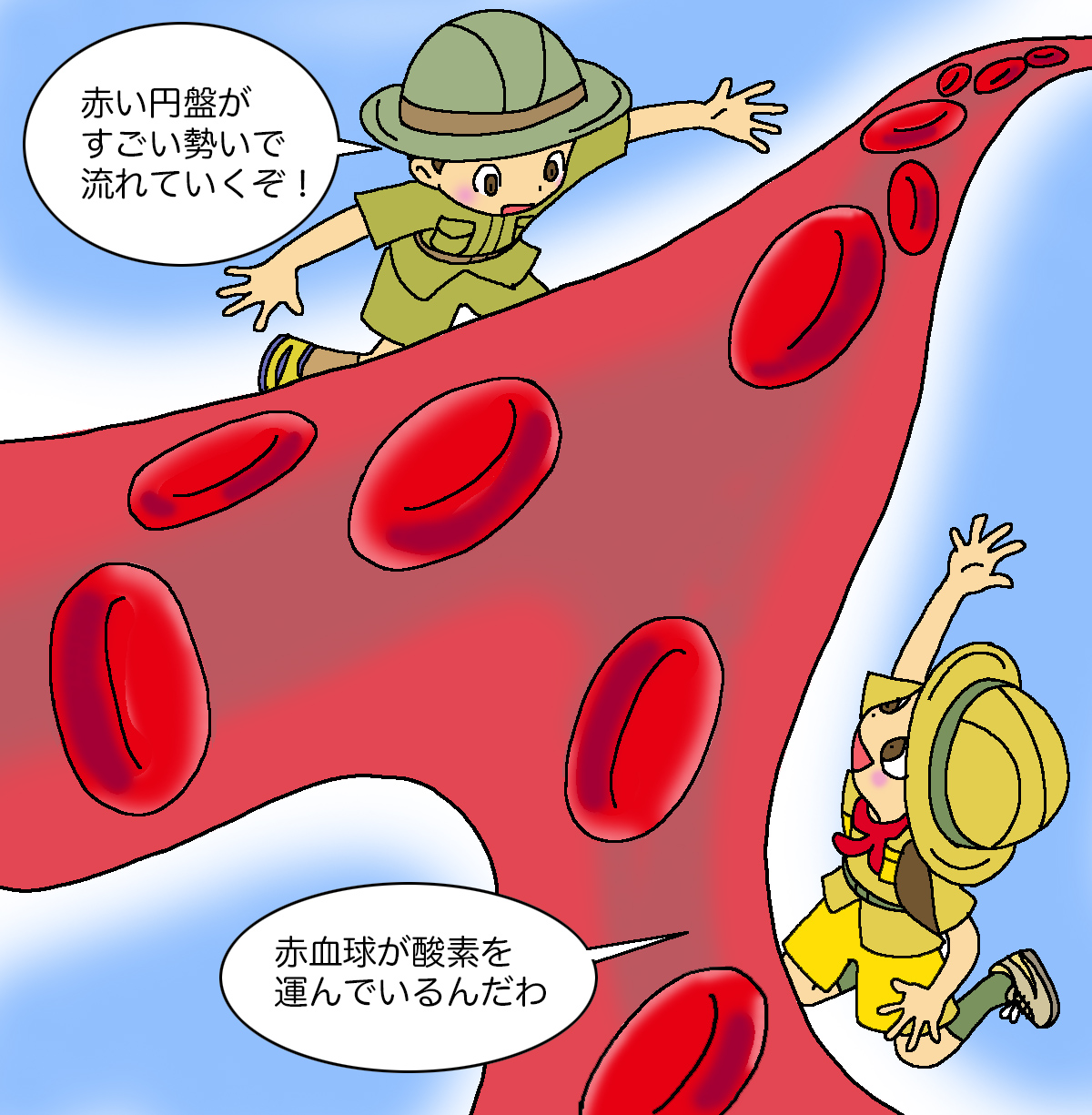血はただ体の中にあるだけではなく、ずっと体内を流れています。心臓から出て、すべての細胞の近くを流れて、そして心臓に戻る。血はこれをずっとずっと繰り返しています。このことから、血は「血液」とよばれています。