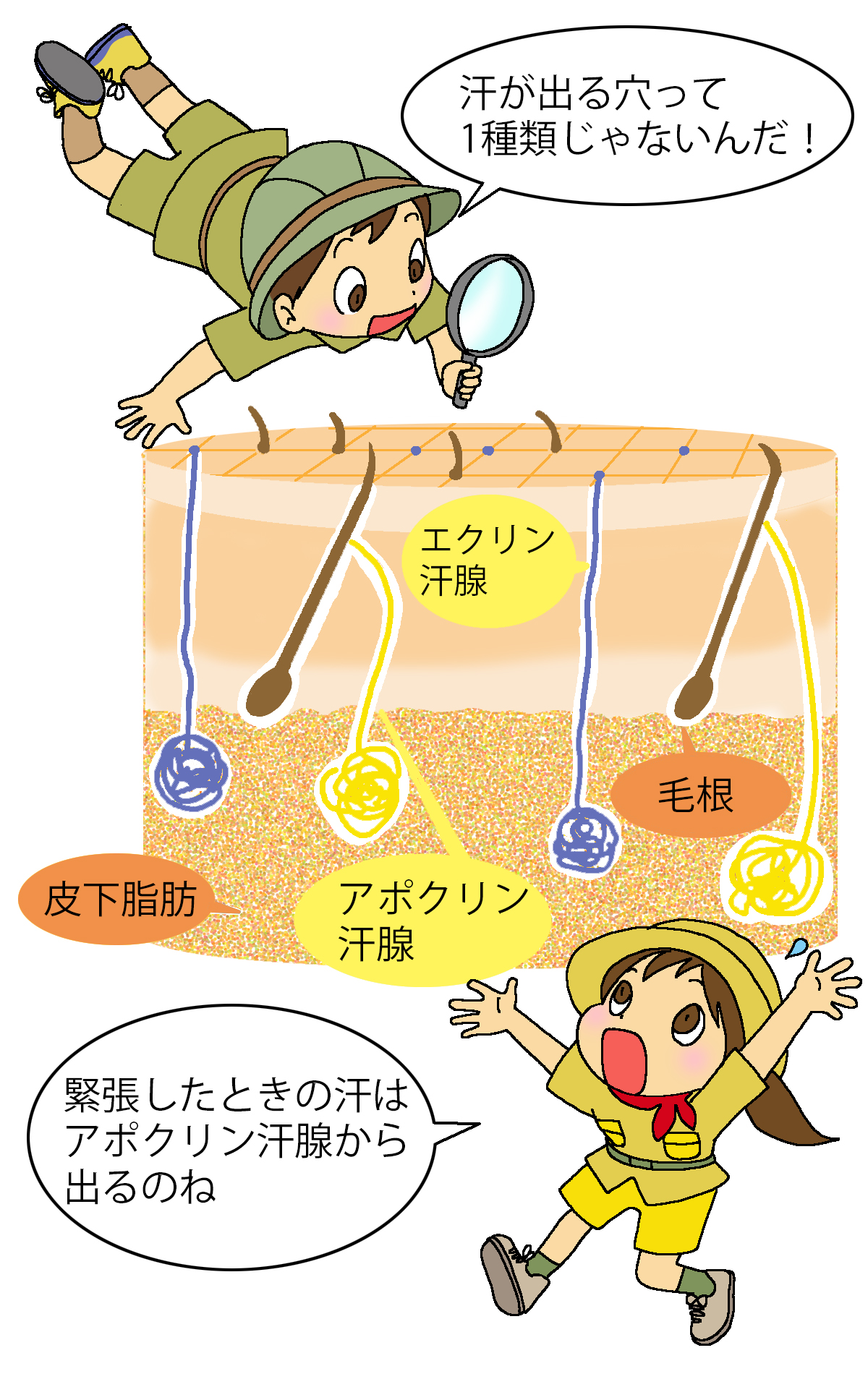 いかがでしたか? 汗を出すことはあなたの体の中の大切なはたらきだということがわかりましたか?