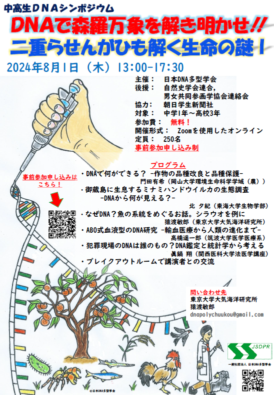 このシンポジウムでは、DNA研究を専門にしている先生方が自身の研究をわかりやすく解説するほか、いかにして現在の研究の道に進むようになったのかを振り返って紹介する予定。進路を考える上で参考になるお話がきっと聞けるはず! 講演後のブレイクアウトルームでは、質問受付や進路相談にも応じてもらえるから、積極的に利用してみて!