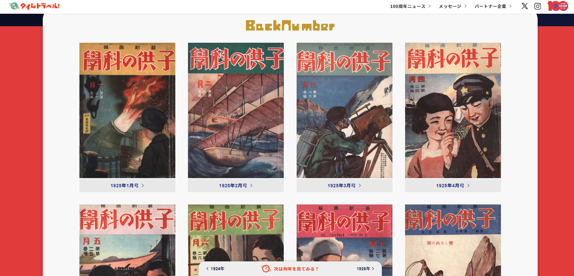 そんな『子供の科学』誌面と100年の科学を旅することができるのが、100周年スペシャルサイト「科学タイムトラベル」です。