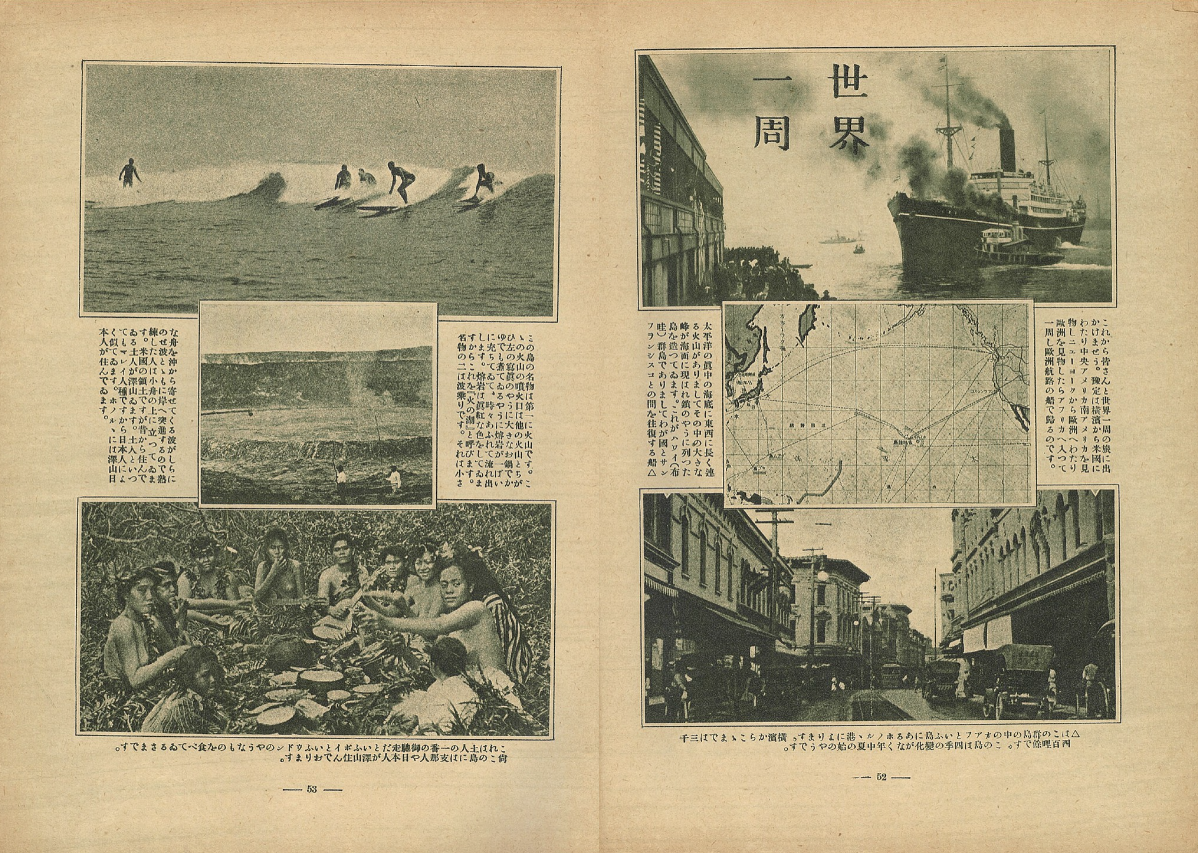 ホノルル市街やサーフィンの様子と一緒に、現地に住む原住民の写真も。記事には、原住民は日本人とよく似た人種で、ホノルルには日本人もたくさん住んでいると書かれています。こうした海外事情の紹介記事も、戦前の『子供の科学』には多くありました。