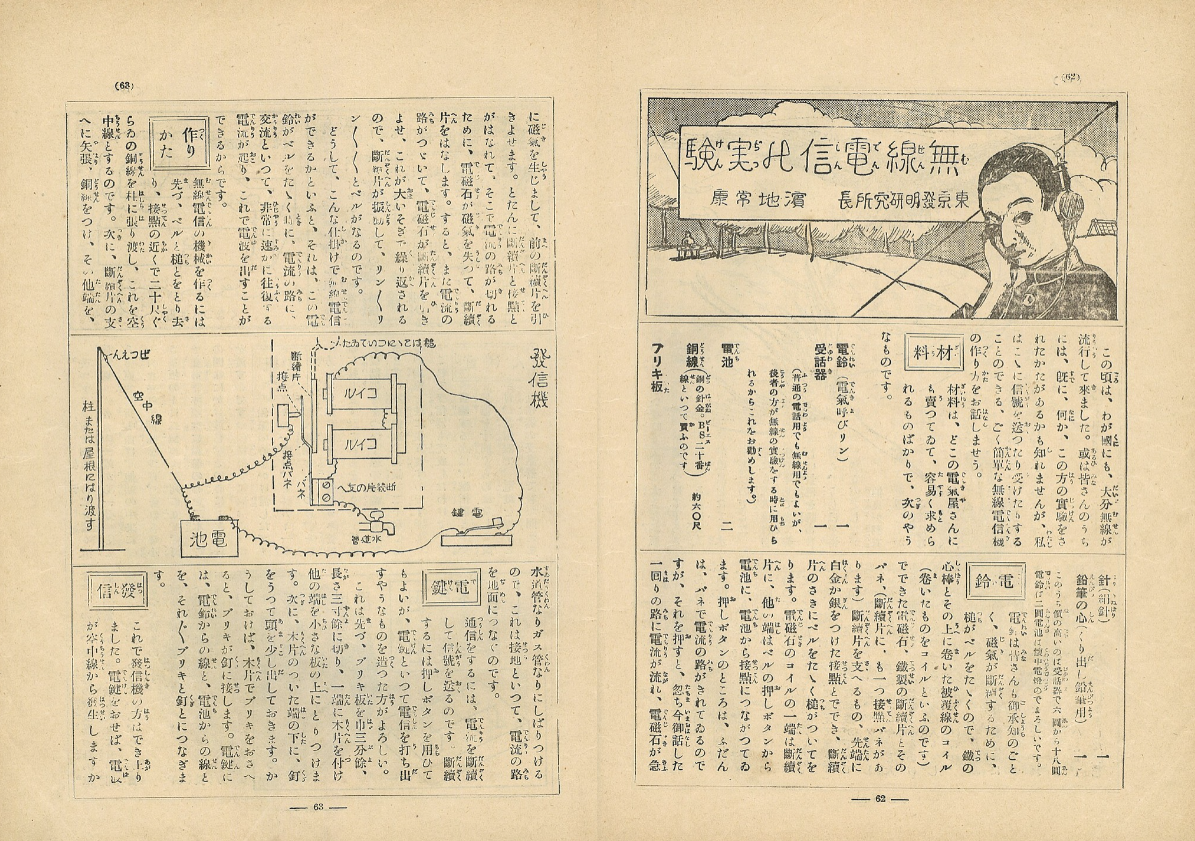 そしてこの当時、流行し始めたのが「無線」です。創刊号では、電気屋さんで集められる材料でつくれる無線通信機を紹介しています。