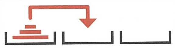 下に示したルールで皿を移して、真ん中のトレーの上に同じ状態(下から大・中・小)になるように3枚の皿を重ねるには、皿を何回動かせばいいか「数字」で答えてね。