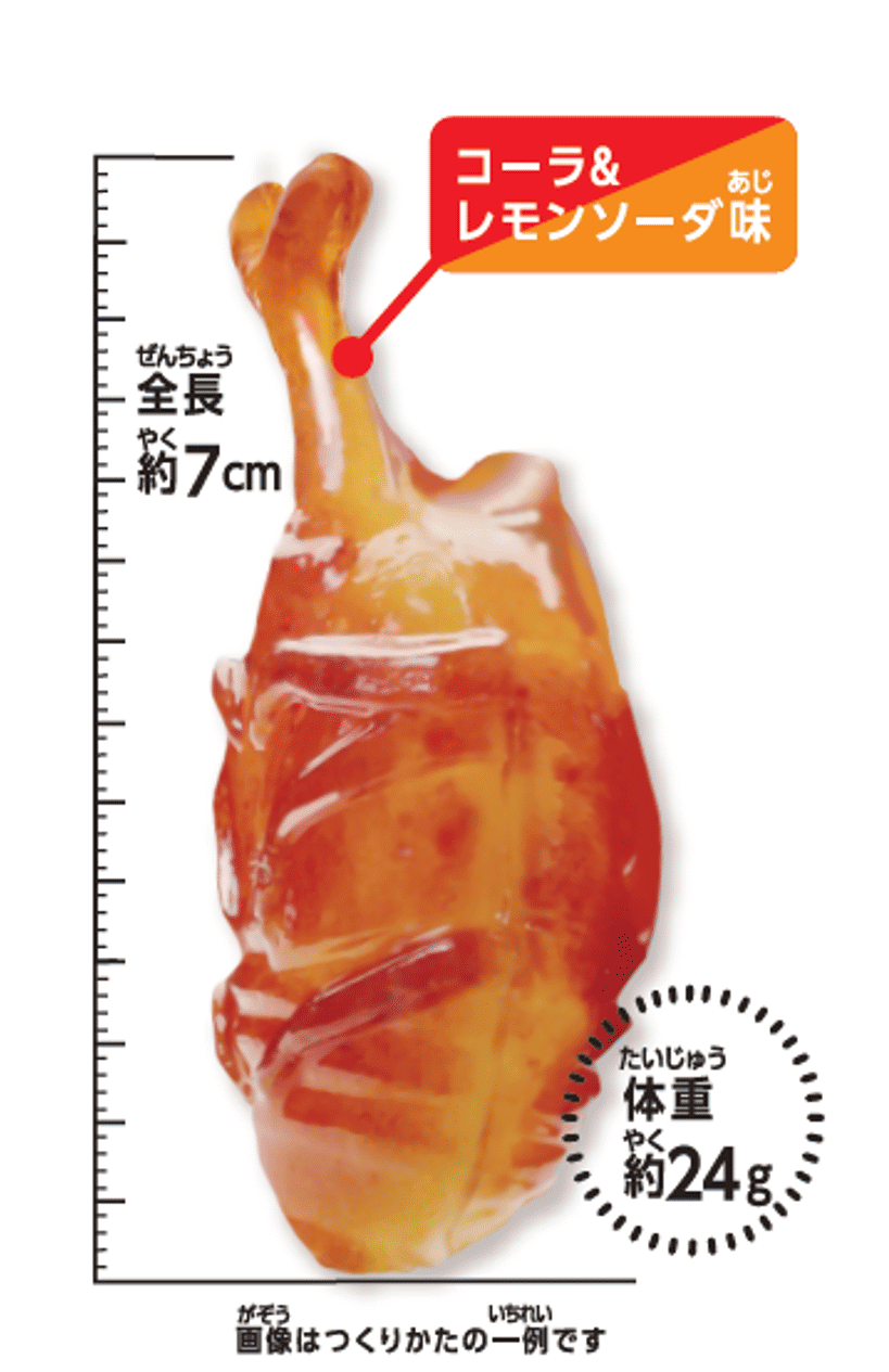 カブトムシのさなぎをリアルに再現。大きさ、重さ、足の形やシワまでこだわった完成度をご覧あれ! 食べるとコーラ&レモンソーダ風味のプリプリ食感。昆虫好きの心を射抜くおもしろスイーツを6 名様にプレゼント。